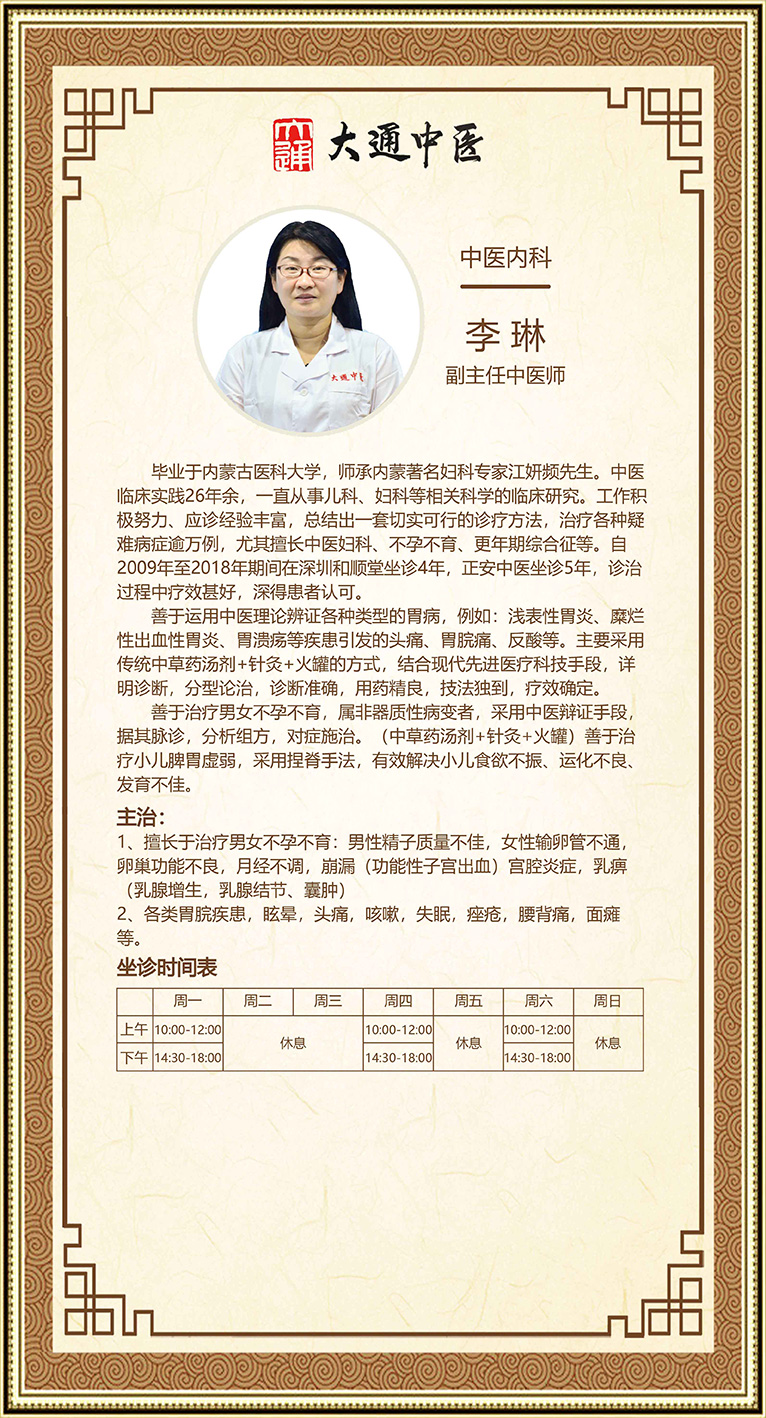 出诊时间:每周一、周四、周六 上午10:00-12:00 下午14:30-18:00