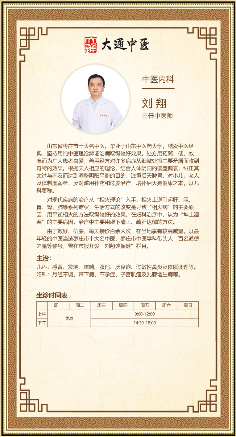 注:从9月1日开始,刘翔医生改为周一、周二两天休息,诊金改为150元,望周知